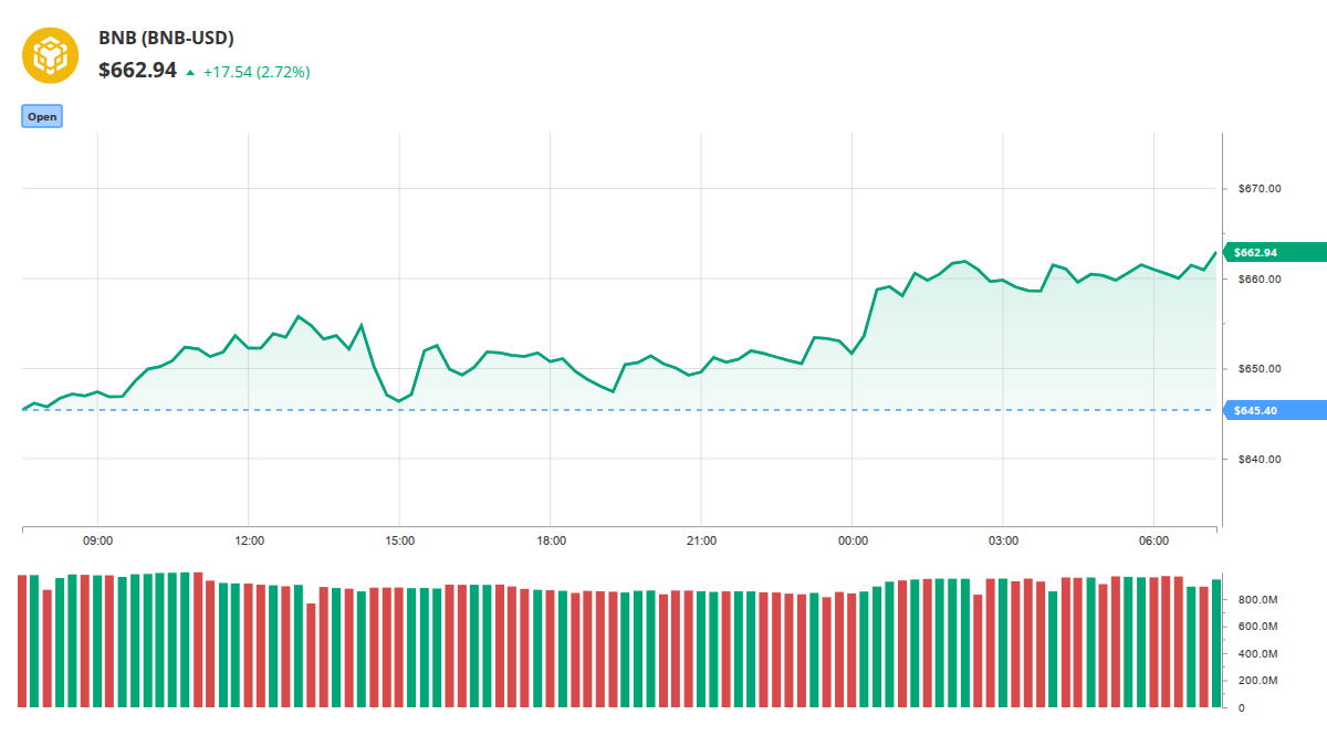 Interactive Bloomberg-style BNB chart with multi-timeframe analysis and technical indicators including moving averages, Bollinger Bands, and VWAP