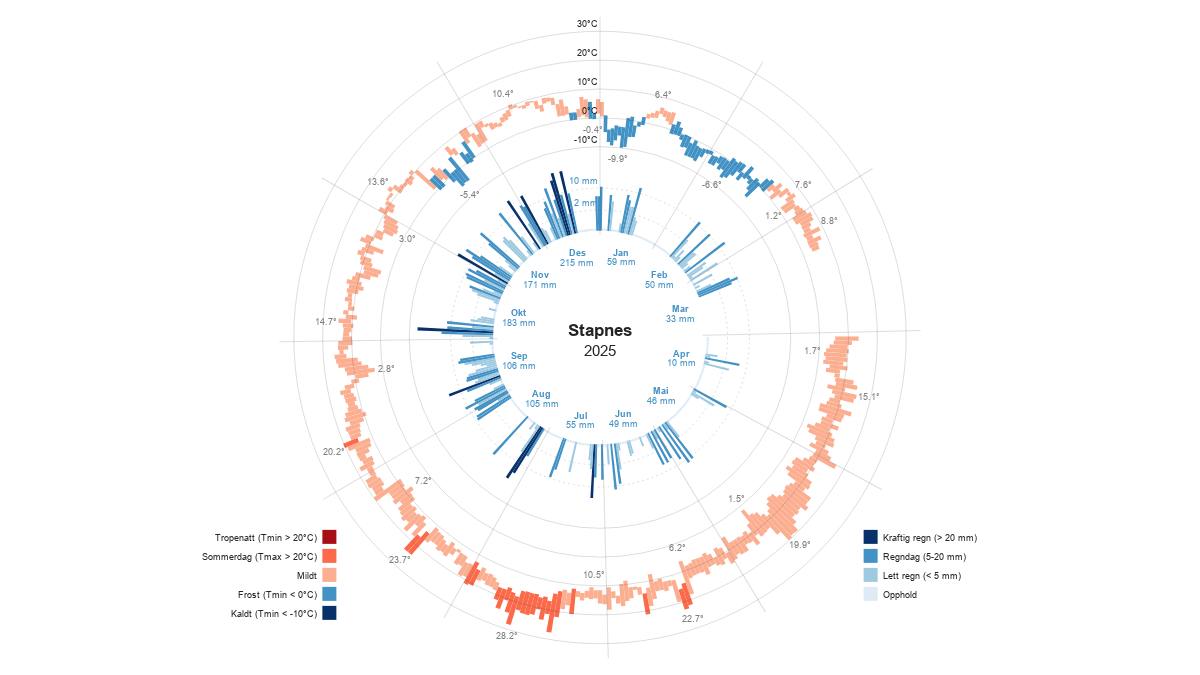Annual weather summary for Stapnes in 2025. Source: Norwegian Meteorological Institute.