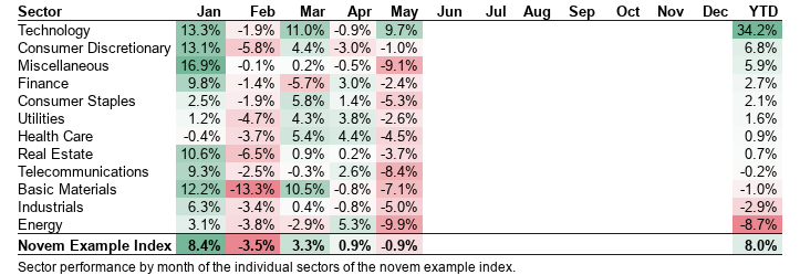 tb.name = "Novem Example Index - Sector Performance by Month 2023"