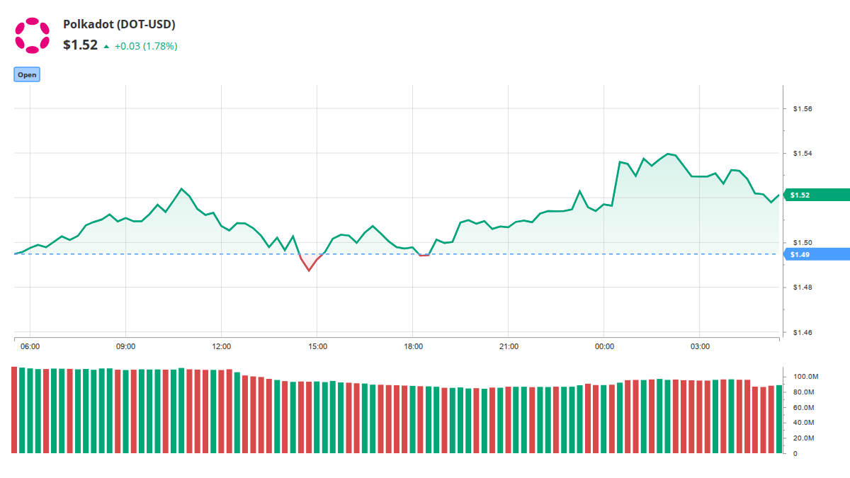 Interactive Bloomberg-style Polkadot chart with multi-timeframe analysis and technical indicators including moving averages, Bollinger Bands, and VWAP