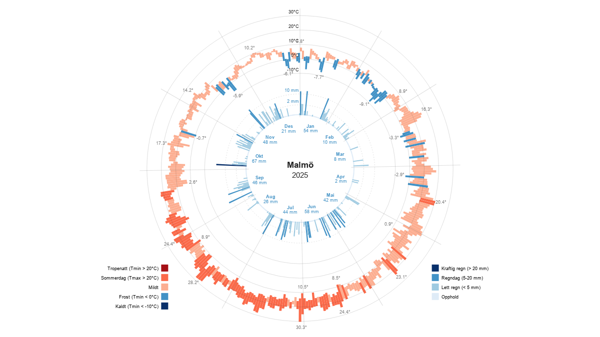 Annual weather summary for Malmö in 2025. Source: Norwegian Meteorological Institute.